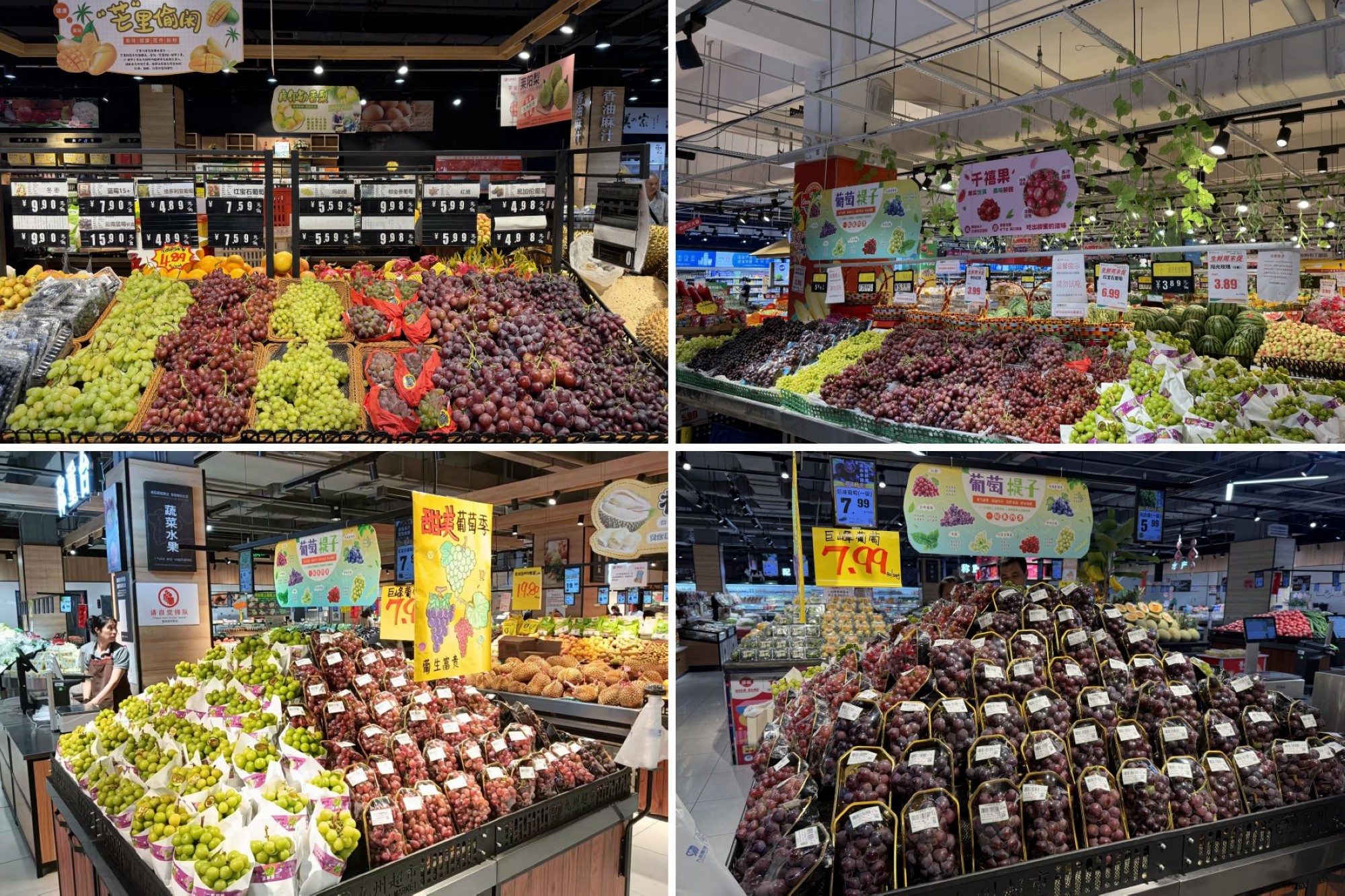 8月4日-31日,超市公司舉辦了“葡萄季”陳列銷售競(jìng)賽,各門店將采購引進(jìn)的巨峰葡萄、陽光玫瑰、維多利亞青提等9大葡萄品種進(jìn)行主題陳列,加強(qiáng)對(duì)“葡萄季”氛圍的營造和宣傳。